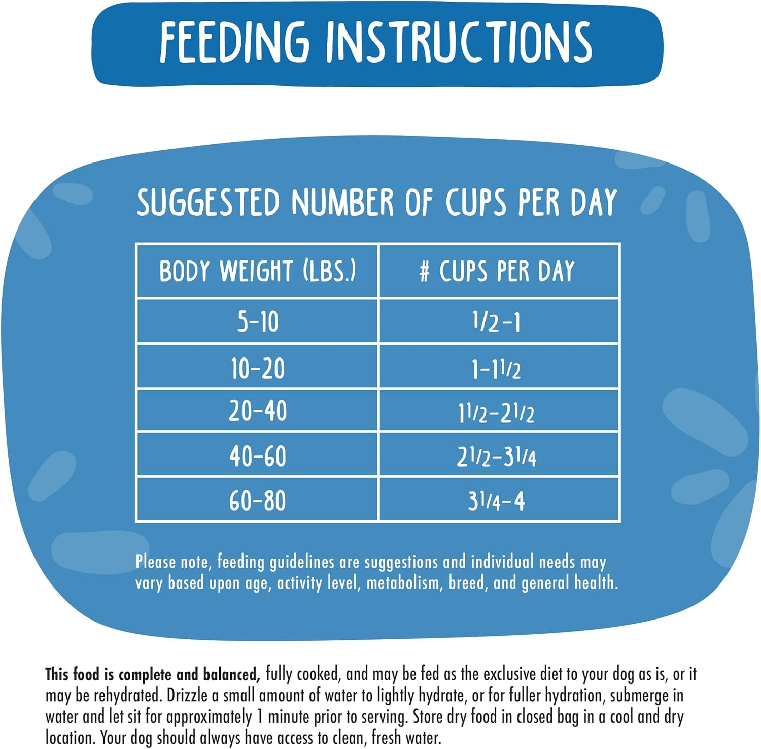 This food is complete and balanced and may be served as the sole diet or rehydrated before feeding. Suggested daily amounts: