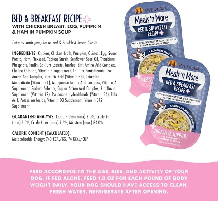 Weruva Meals 'n More Natural Wet Dog Food, Bed & Breakfast Plus Digestive Support (Pack of 12)