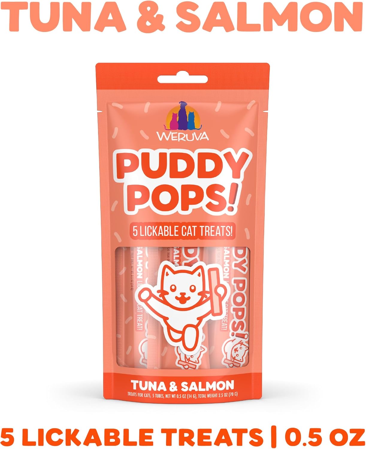 Weruva Puddy Pops, Tuna and Salmon Lickable Cat Treats 0.5oz Tube, Pack of 5