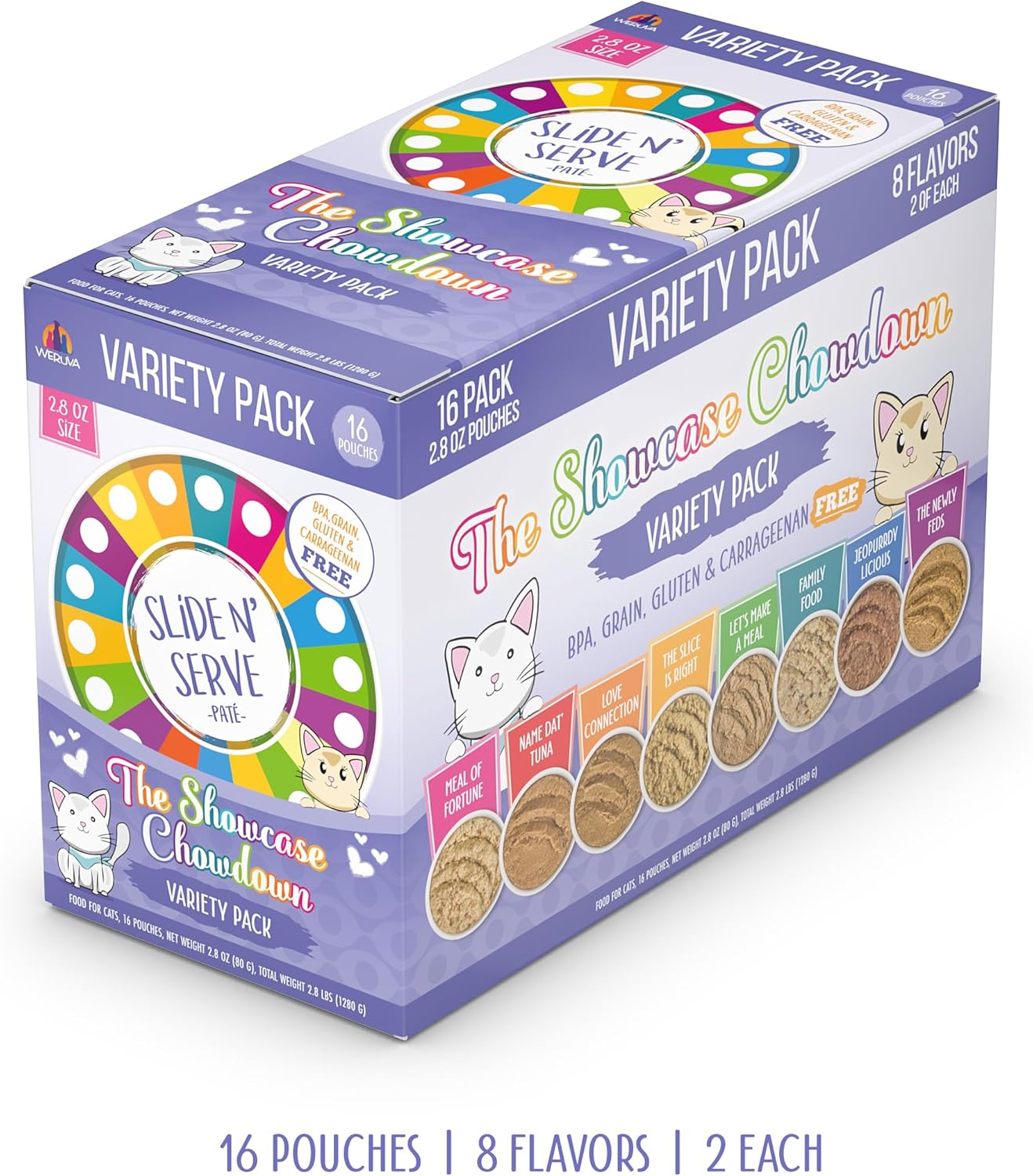 Weruva Slide N' Serve Paté Wet Cat Food, The Showcase Chowdown Variety Pack (Pack of 16)