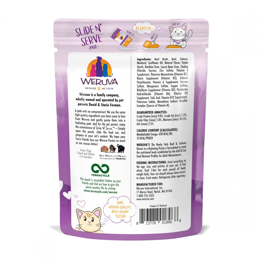 Weruva Wet Cat Food, The Newly Feds with Beef and Salmon Pate, Slide N Serve Pouch (Pack of 12)
