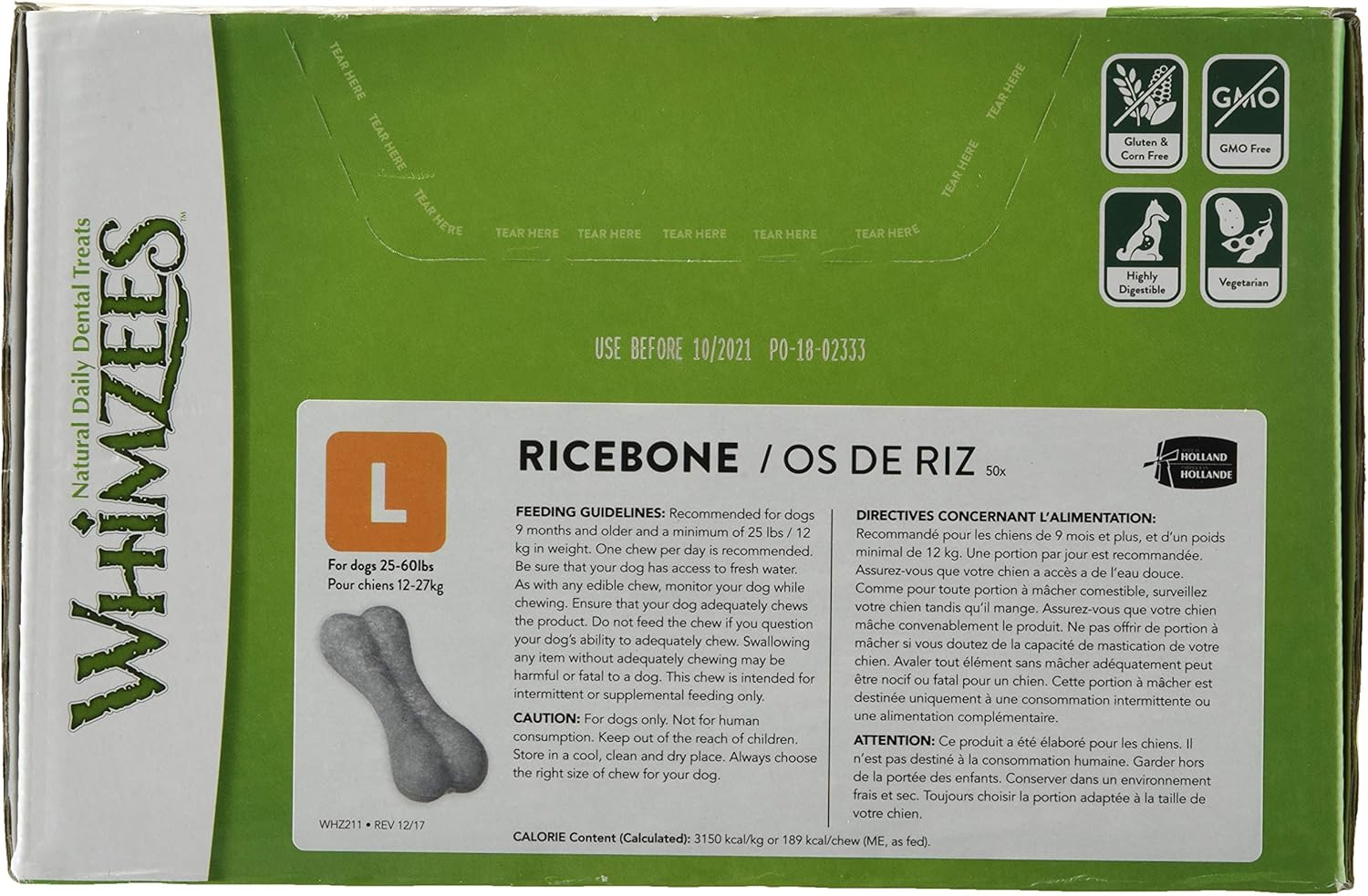 Brand Whimzees Flavor Rice Age Range (Description) Adult Item Form Stick Special Ingredients Sweet Lupine Meal About...