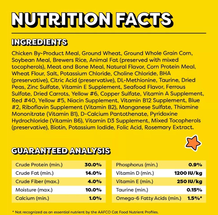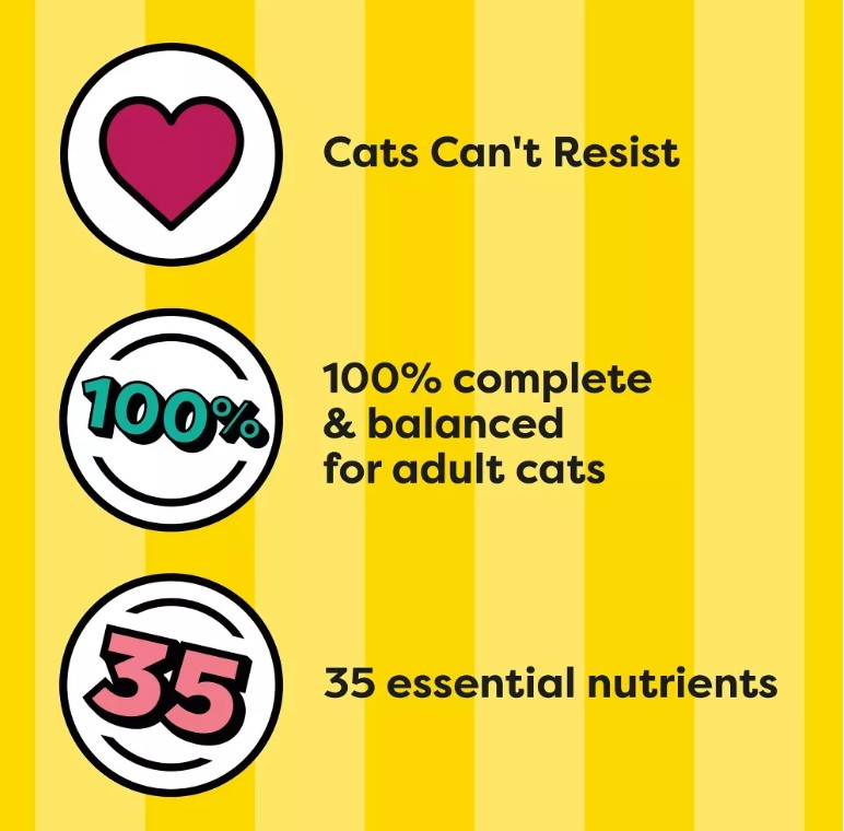 Formulated with high-quality protein, this complete and balanced food helps support strong, lean muscles. It also contains 35 essential vitamins, minerals, and amino acids to keep your feline friend healthy from whiskers to tail. Added Omega-6 fatty acids support shiny, soft fur, while Calcium and Vitamin D maintain strong teeth and bones, and Vitamin E boosts immune health. Every meal is both nutritious and irresistibly delicious!