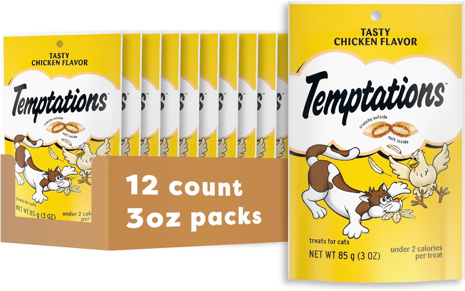 Temptations Classic Crunchy and Soft Cat Treats Tasty Chicken Flavor, 3 oz. Pouch (Pack of 12)