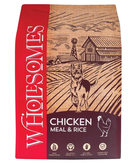 SPORTMiX® Wholesomes™ Chicken Meal & Rice Formula is designed for dogs that need a high-energy diet from a single source of high-quality chicken protein. This formula is made without high-moisture protein sources or common grains such as corn, wheat, or soybeans, making it a wholesome alternative to many other dry dog foods. It is nutritionally balanced with Omega-6 and Omega-3 fatty acids to promote healthy skin and a shiny coat, while natural vegetable fibers help support good digestion. The formula is naturally preserved and provides 100% complete and balanced nutrition to support an active and healthy life. Available in 40 lb. and 16.5 lb. bags.