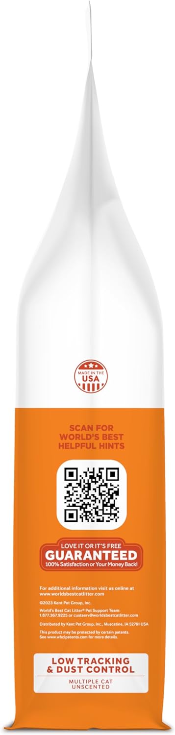 WORLD'S BEST CAT LITTER Low Tracking & Dust Control Multiple Cat Unscented 15-Pounds - Natural Ingredients, Quick Clumping, Flushable & Made in USA - Long-Lasting Odor Control & Easy Scooping