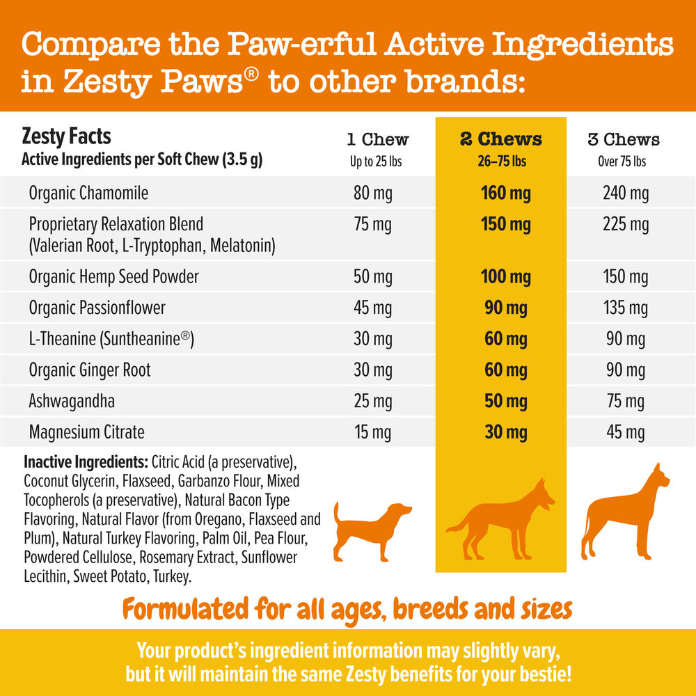Each soft chew features a powerful blend of Suntheanine® (an advanced form of L-Theanine), premium Sensoril® Ashwagandha, Chamomile, Valerian Root, and L-Tryptophan to promote relaxation, calmness, and composure without drowsiness. These functional chews are perfect for everyday stressors, helping your pup handle challenging situations with ease.