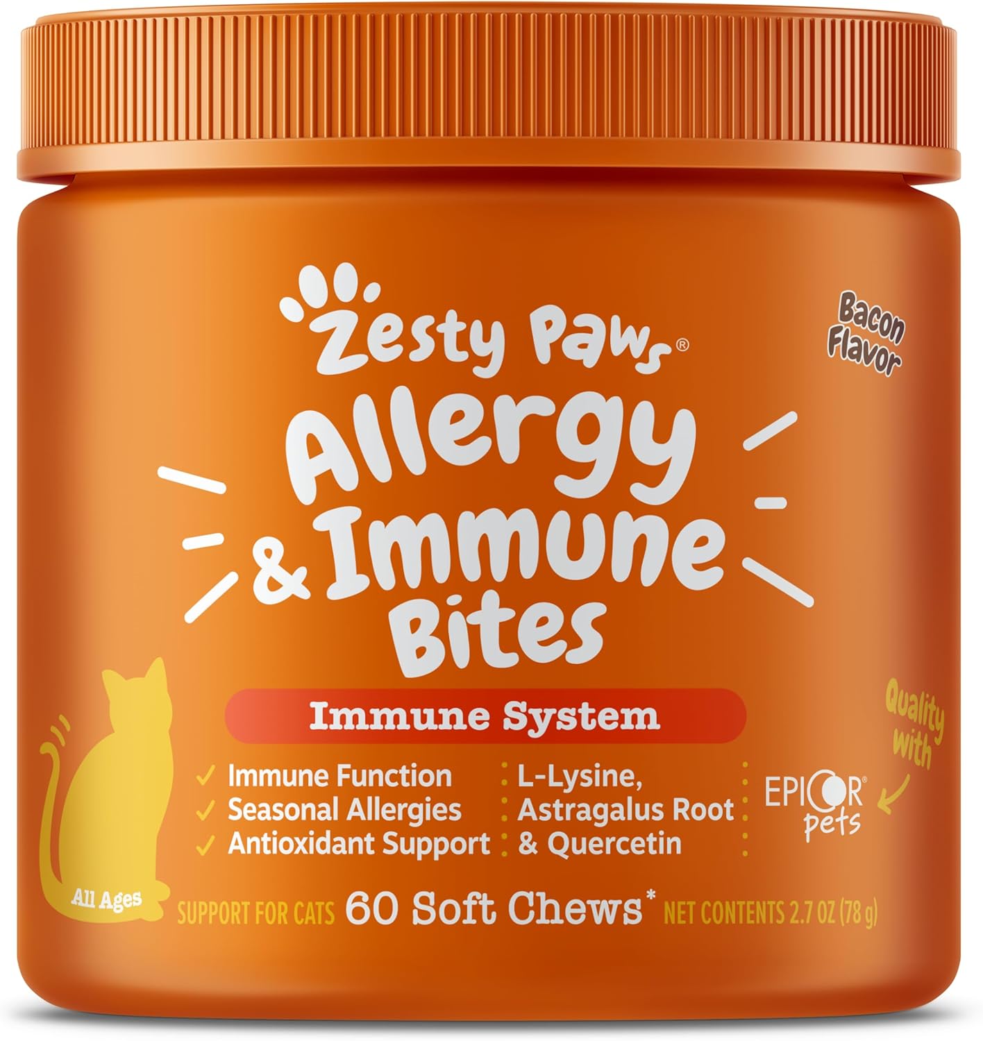 - Cats Love Them! - If you need immune system support that your cat will love, these bacon flavored chewables will make your cat meow with delight.