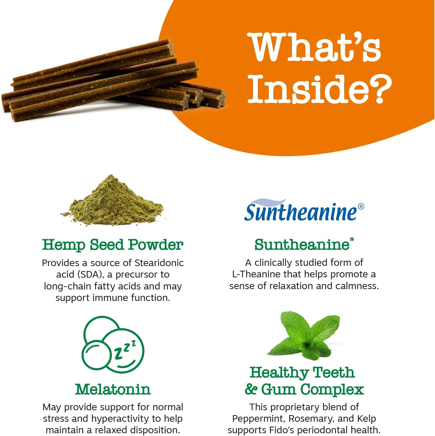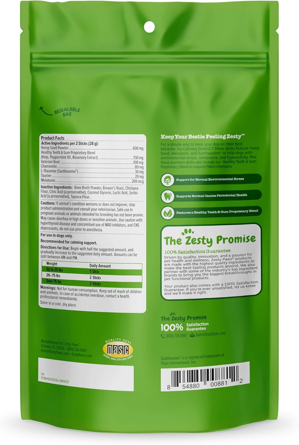 Zesty Paws OraStix for Dogs - Calming Dental Sticks for Stress with Hemp Melatonin Chamomile Dog Healthy Teeth and Gums Calm Composure for Fireworks and Thunderstorms - 12oz