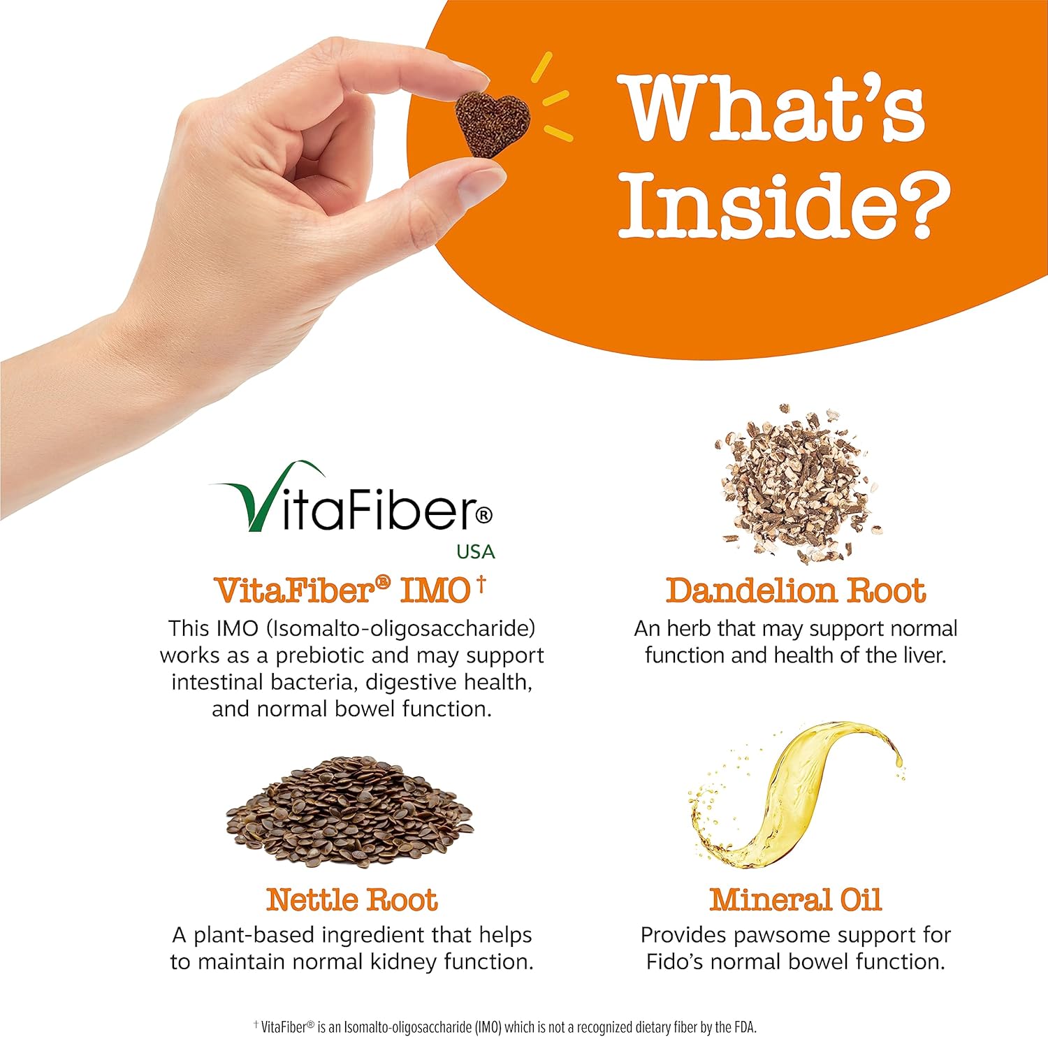 - Support for Gut & Bowels – The VitaFiber *, Mineral Oil, and Scoot Away Blend in this chewable helps digestion, normal bowel function, kidney, and liver support to stop pet parents from worrying and put them at ease.