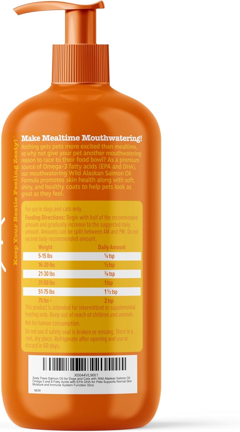 Zesty Paws Wild Alaskan Omega-3 Blend Pollock + Salmon Oil for Dogs and Cats- Skin and Coat Support, Omega 3 Supplement for Pets, 32oz