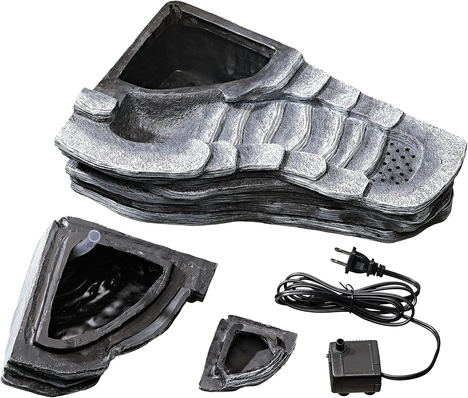Naturalistic waterfalls help add humidity to any habitat Corner design reduces space used Moving water entices reptiles...