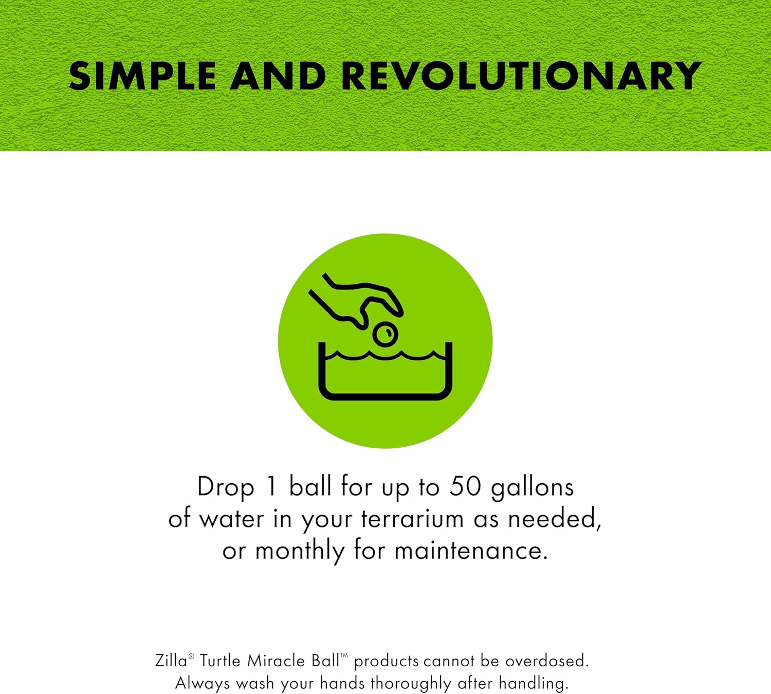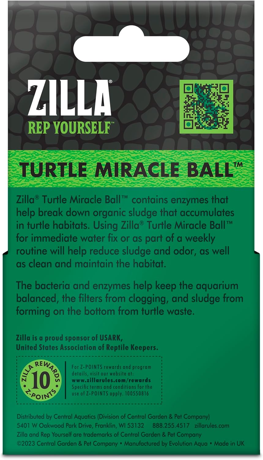 Zilla Pet Turtle Miracle Ball, Odor and Sludge Remover, for Cleaner and Healthier Turtle Habitats and Aquariums, Treats up to 50 Gallons