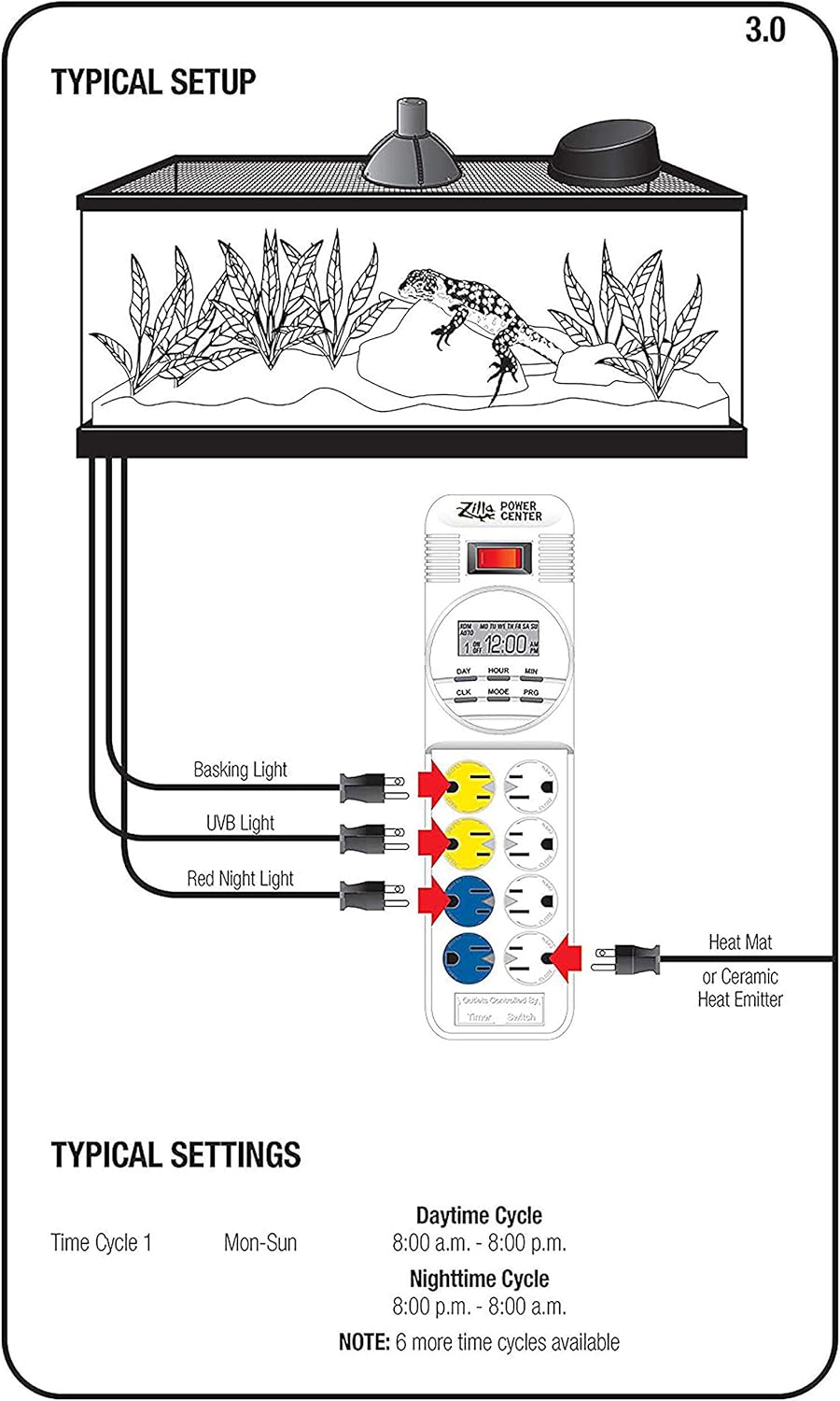 Zilla Reptile Pet Habitat Lighting & Terrarium Heat Power Center Timer, Digital