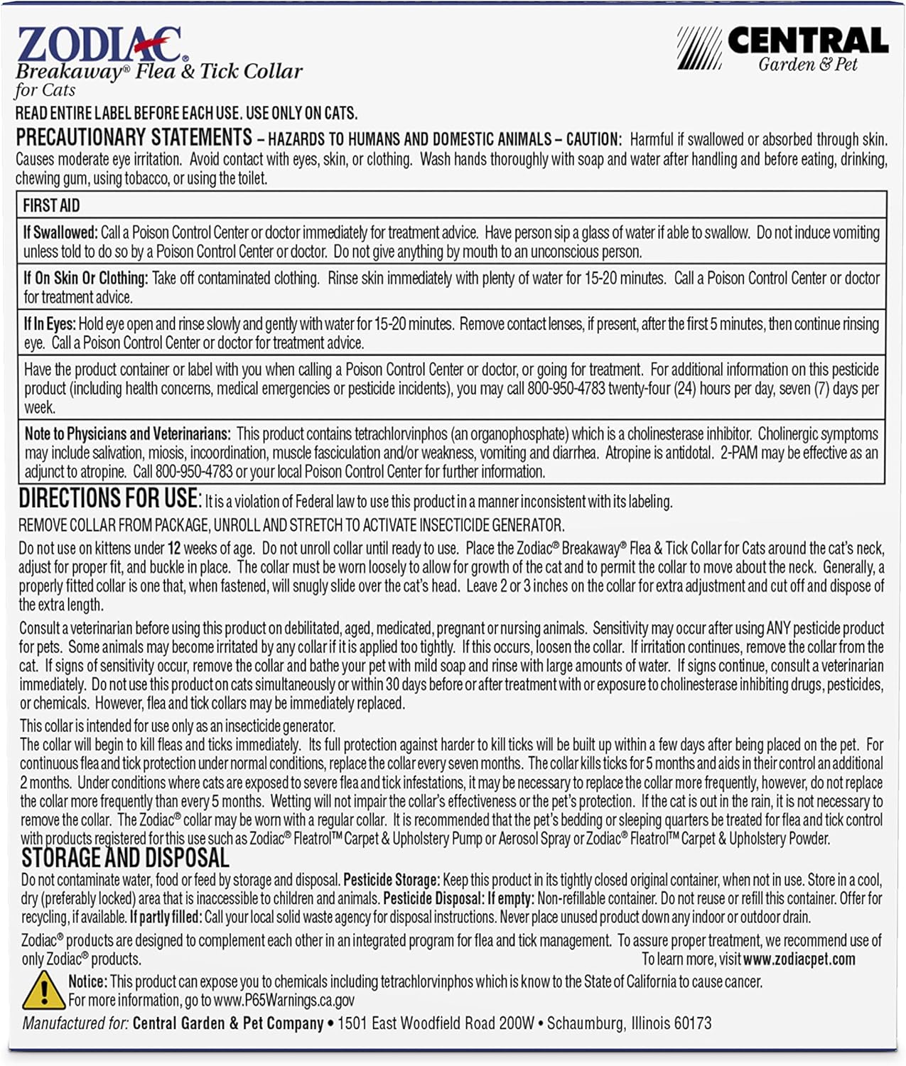 Zodiac Breakaway Flea and Tick Collar for Cats, 13"
