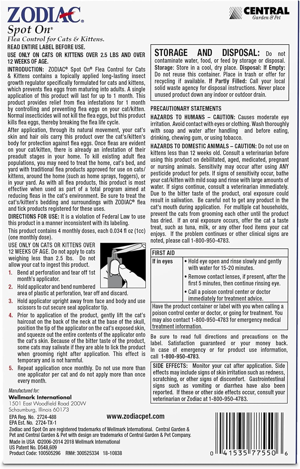 Zodiac Spot On Plus Flea & Tick Control for Cats 5 lbs and Over 4 Pack