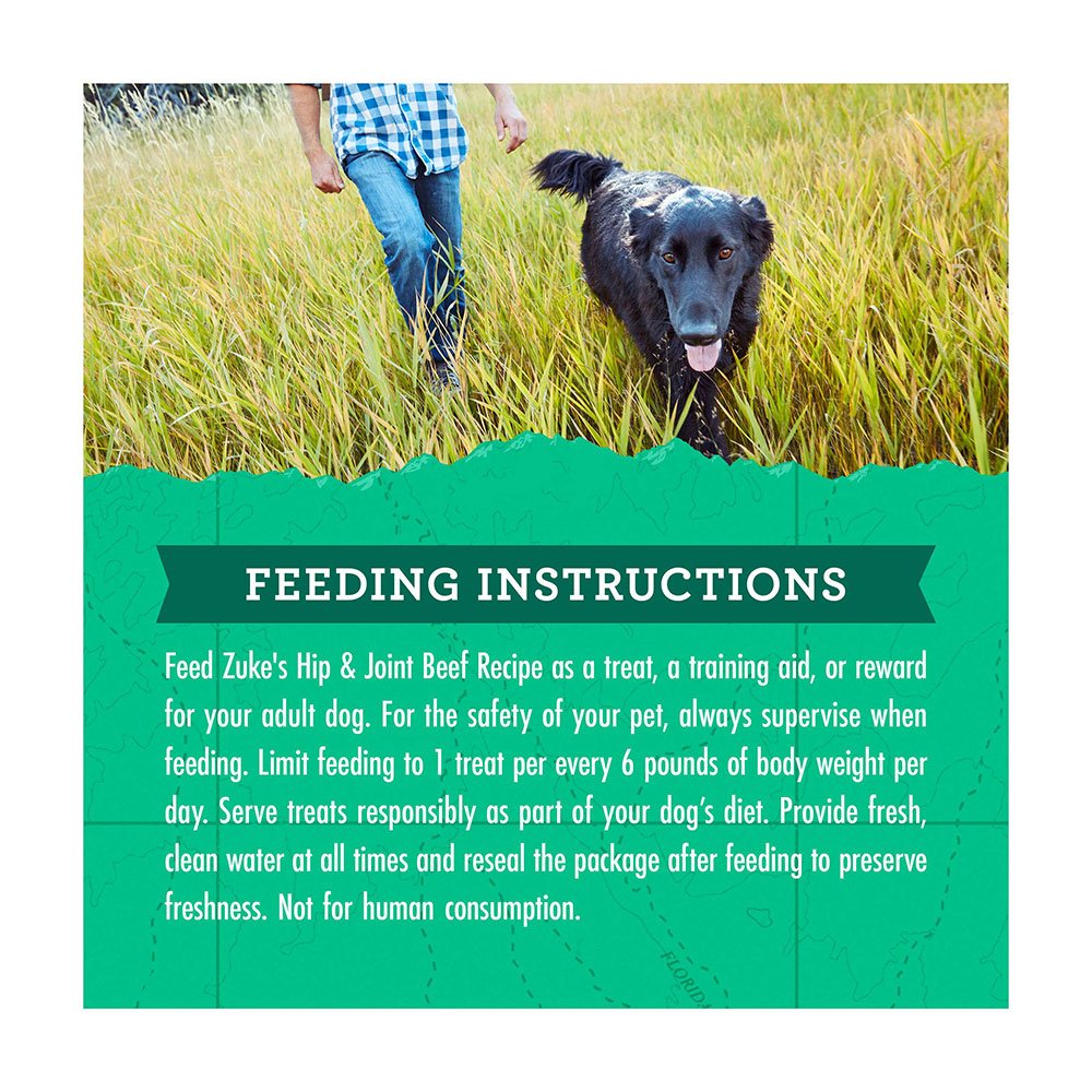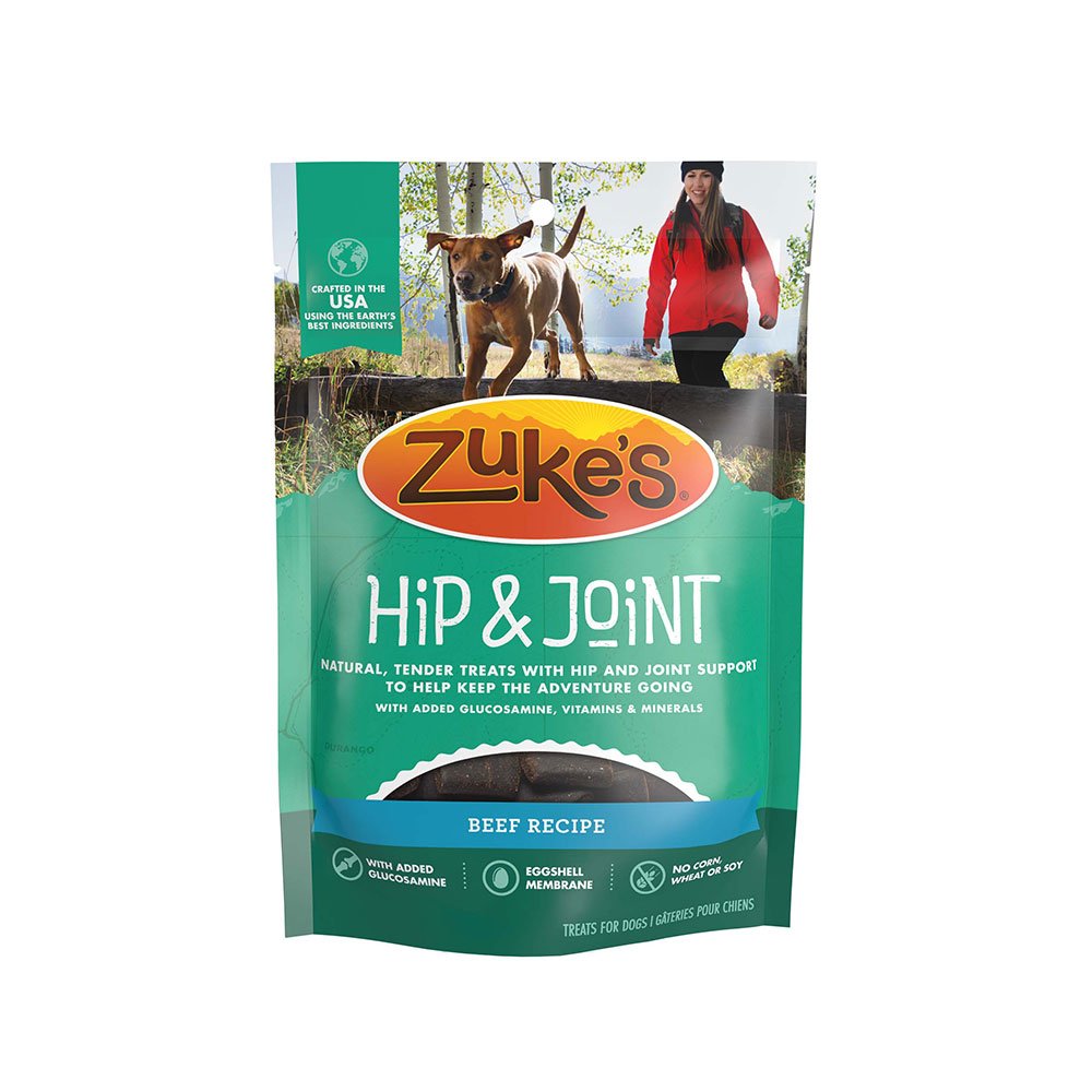 Zuke’s Hip And Joint Dog Treats Beef Recipe, With Hip And Joint Support For Dogs, Soft And Chewy Natural Dog Treats With Added Vitamins And MineralsThis bag of treats is made with real beef as the number one ingredient, as well as with oats, cherries, turmeric and added vitamins and minerals for dogsSoft and chewy beef recipe dog treats provide hip and joint support with each bite. These dog snacks are also great training bites and are made without corn, wheat, or soy