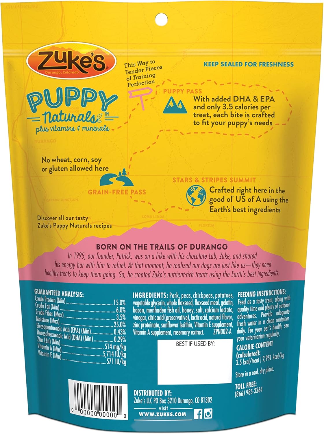 Zuke's Puppy Naturals Dog Training Treats, Pork & Chickpea Recipe, Nutrient