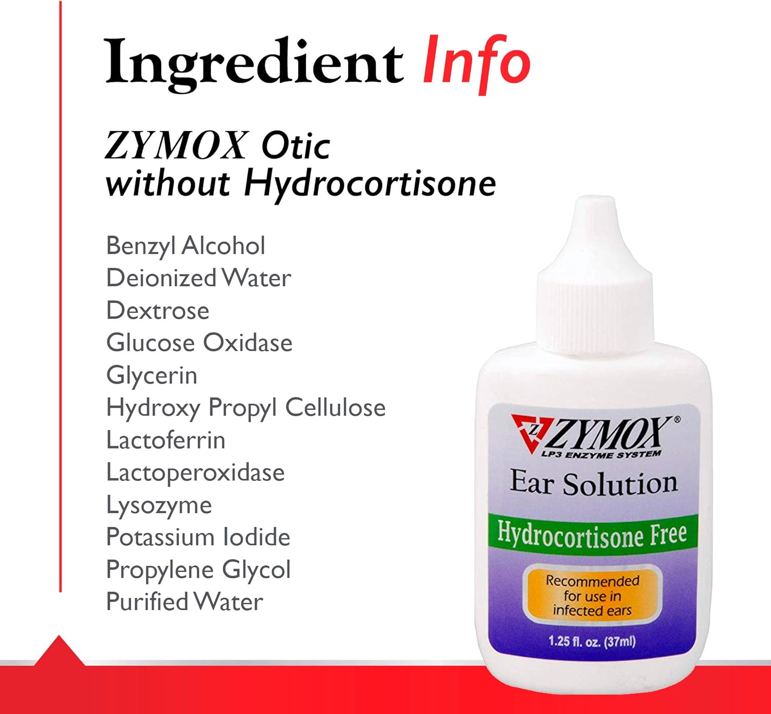 Zymox Otic Enzymatic Ear Solution for Dogs and Cats to Soothe Ear Infections Without Hydrocortisone, 1.25oz